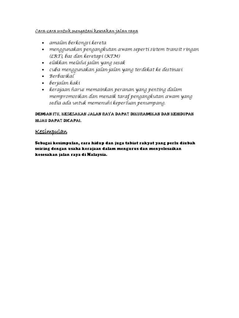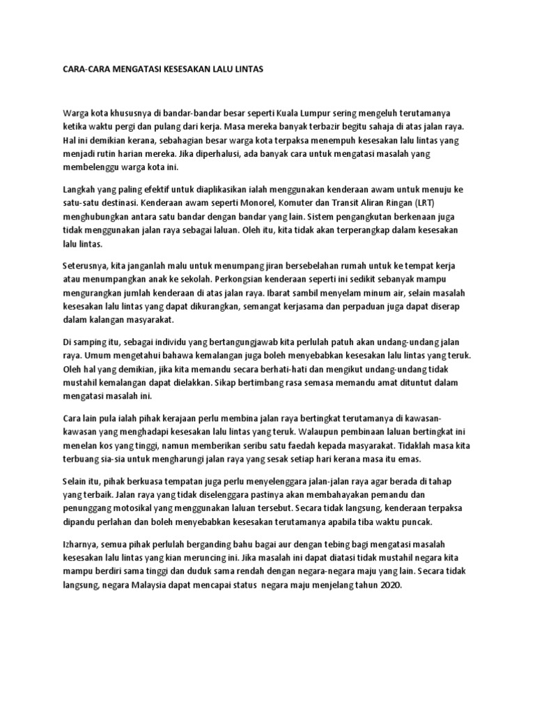 Cara Cara Untuk Mengatasi Kesesakan Jalan Raya Pdf